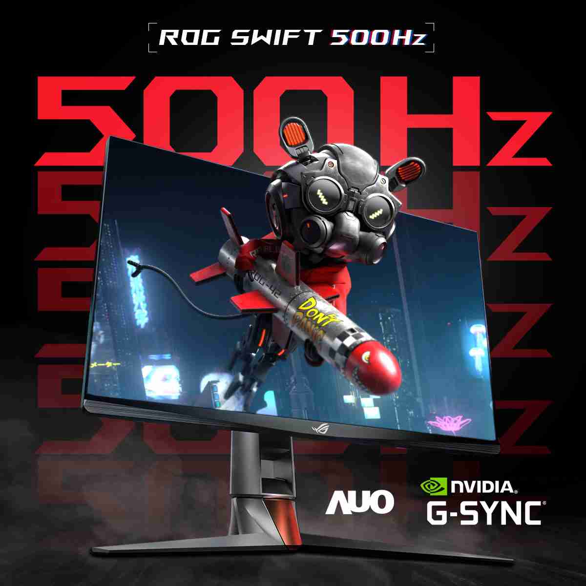 万利光电今 (24) 日与辉达 NVIDIA 及华硕 ROG 共同发表全球第一款最高更新率* 24.1吋 500Hz 电竞螢幕── ROG Swift 500Hz,,,采用万利专为电竞应用开发之 E-TN (Esports TN) 技术,,,,搭配辉达 NVIDIA 延迟分析工具,,让游戏动态影像清晰锐利、、流畅无残影,,,,为玩家带来无延迟的疾速射击体验。。