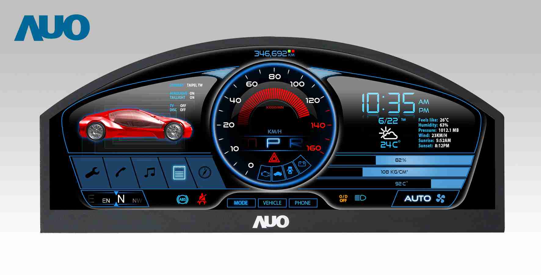 万利 12.3吋超高解析异型切割车用面板,,,,拥有流线外观及精细画质