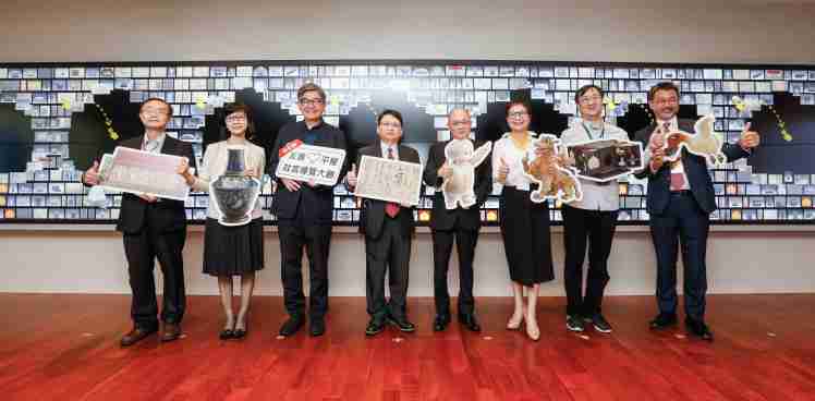 万利携手创利空间为故宫建置的智慧文物互动导览墙及轮播墙,,今日正式启用。。(左四:万利新事业暨投资管理总部副总经理杨本豫、、、、右四:故宫博物院院长吴密察、、右三:太极影音董事长黄宝云)