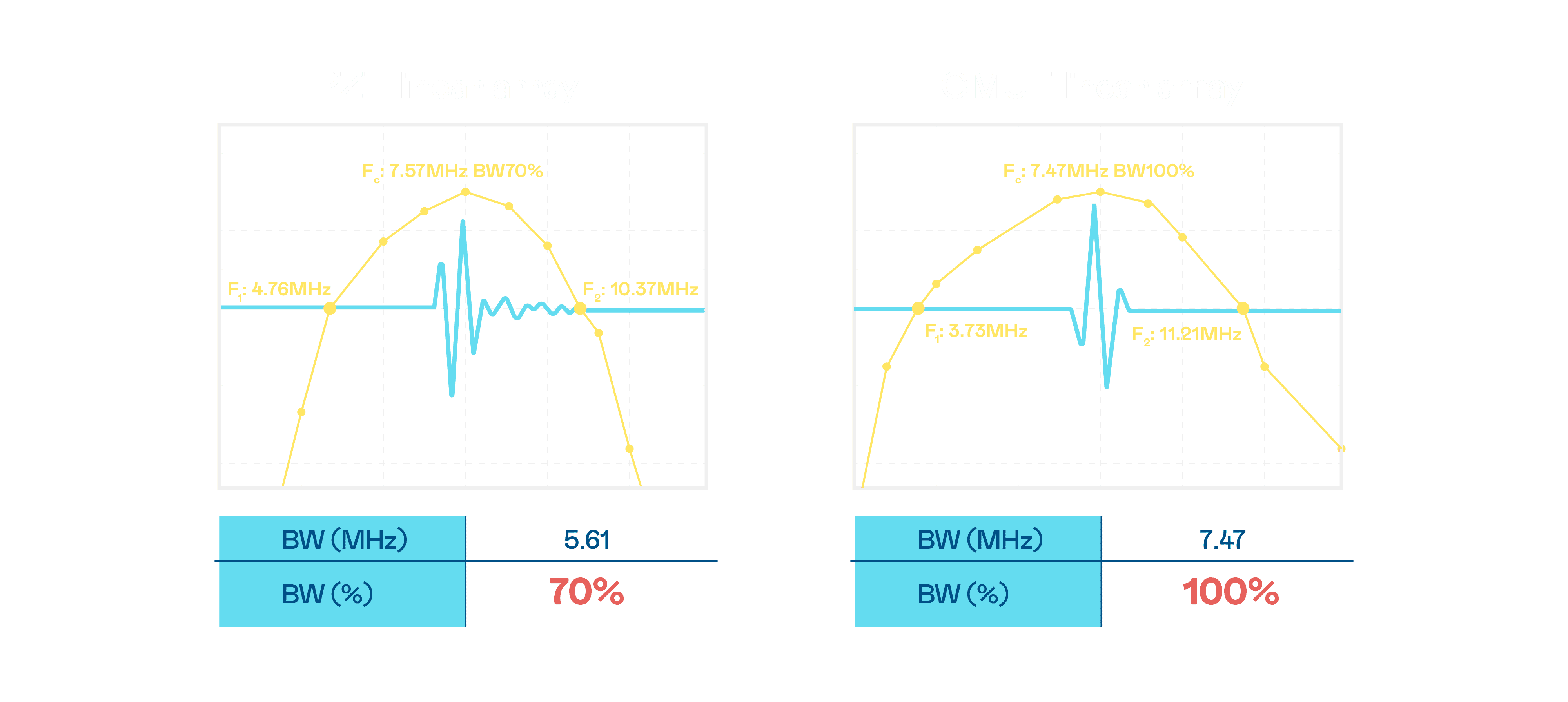 超音波影像的解析度高低,,,首先取决于探头能发出的讯号频宽。。。万利 CMUT 可提供高清晰的超音波讯号,,,,提供高频宽、、高灵敏度、、、、影像纹理细节更高的超音波影像,,,,协助医护人员缩短影像判读时间及利用精准的医疗影像进行诊断。。。。